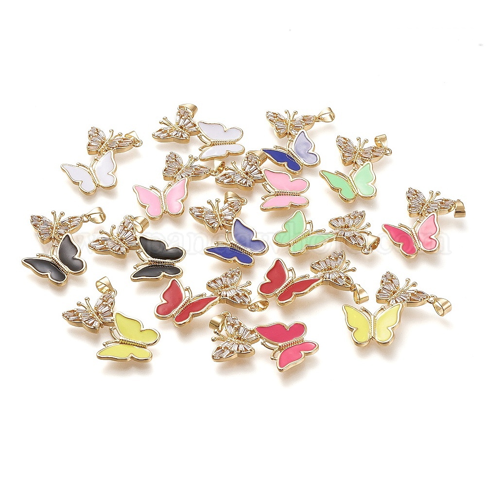 Латунные микро проложить кубического циркония подвески, с эмалью, реальный 18 k позолоченный, двойная бабочка