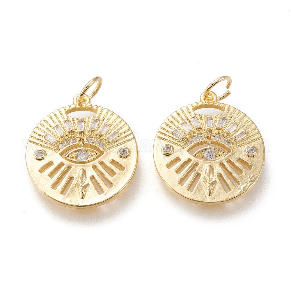 • Золотой Латунные микропаве прозрачные подвески с фианитом, с прыжковых колец, долговечный, плоско-круглые, золотые, 22x19.5x2 мм, отверстие : 4.5 мм