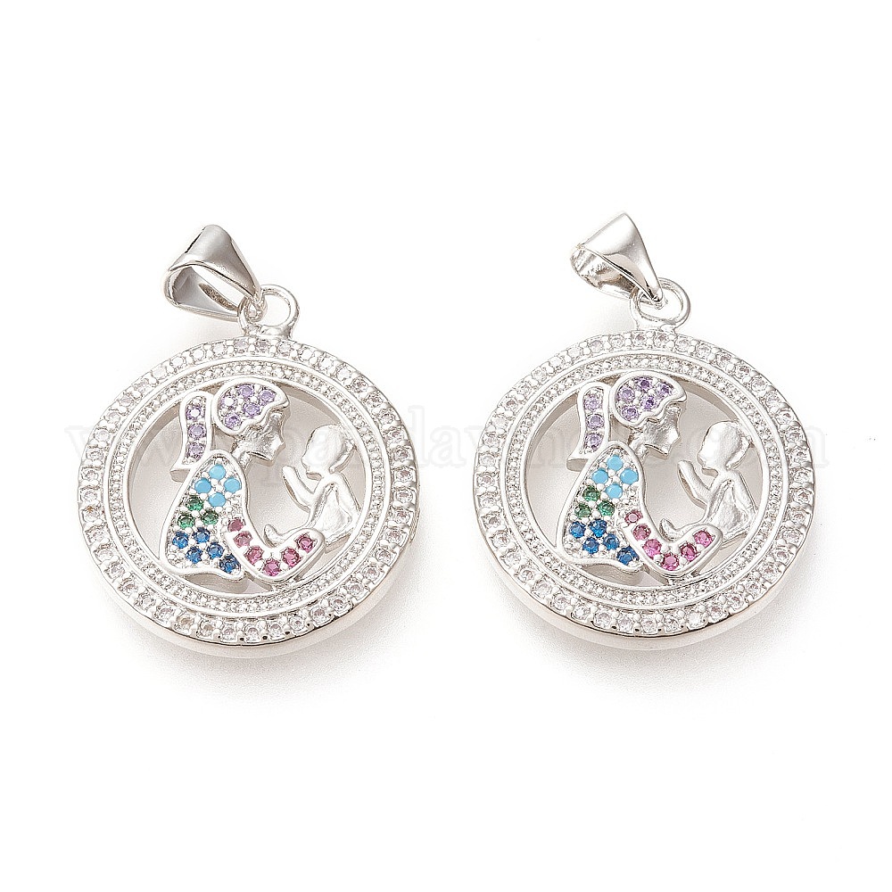 Латунные микропаве прозрачные подвески с фианитом, День матери, долговечный, плоские круглые с человека, красочный