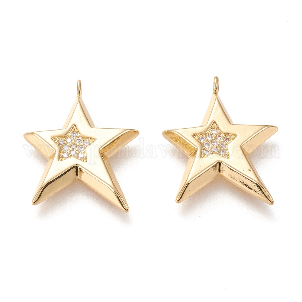 Латунные микропаве прозрачные подвески с фианитом, долговечный, звезда, прозрачные