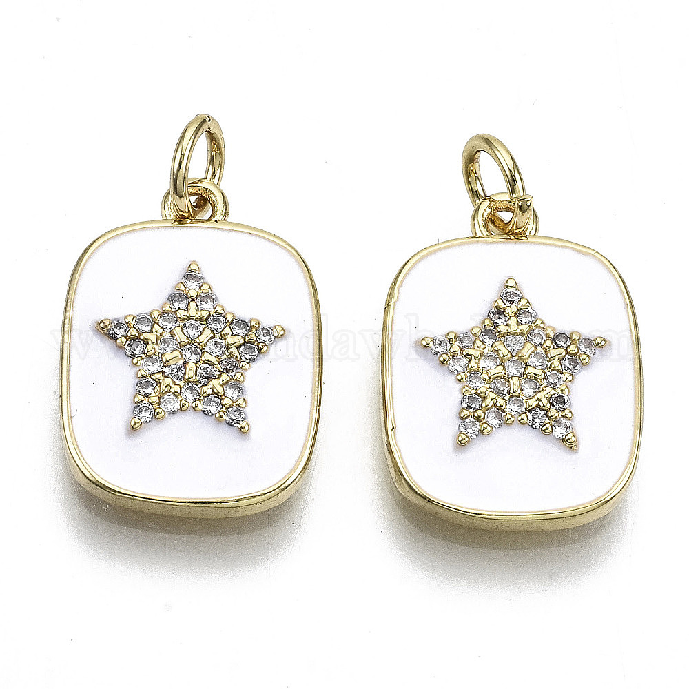 Латунные микропаве прозрачные подвески с фианитом, с эмалью и кольцом для прыжков, прямоугольник со звездой, реальный 16 k позолоченный, без никеля