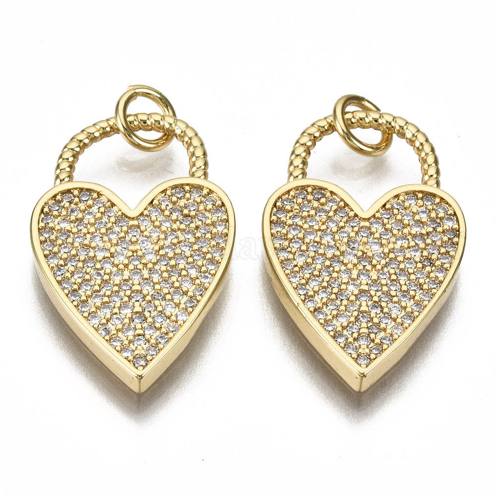 Латунные микропаве прозрачные подвески с фианитом, с прыжковых колец, без никеля , форма замка сердца