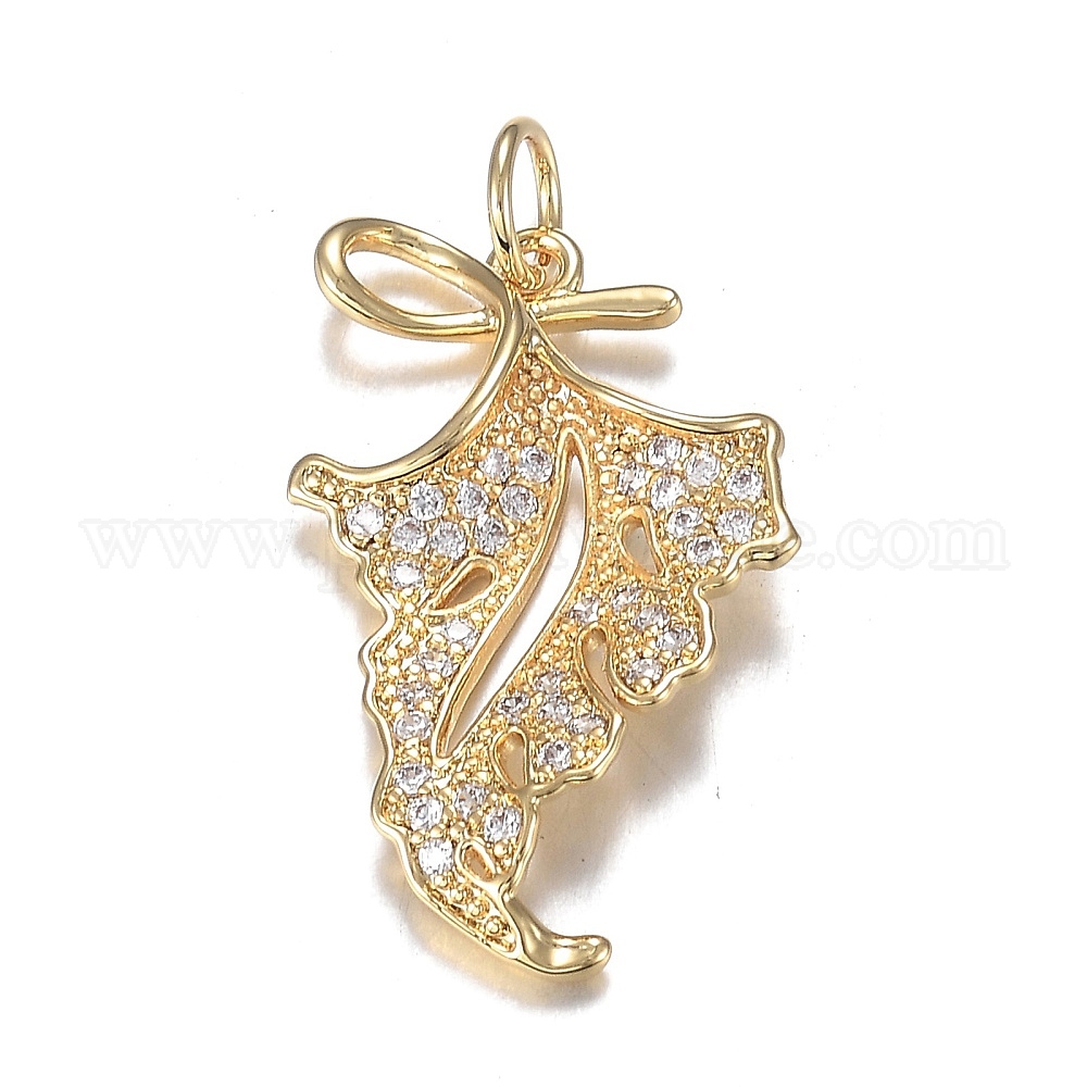 • Настоящее золото 18K Кулоны из латуни с прозрачным фианитом, долговечный, лист, реальный 18 k позолоченный, 25x15x3.5 мм, отверстие : 3.6 мм