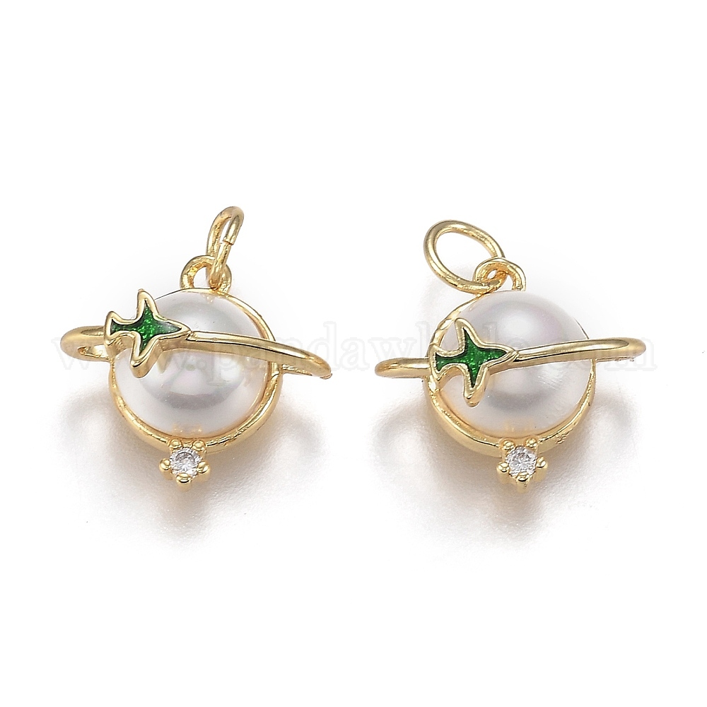 Латунные микропаве прозрачные кубические циркониевые подвески, с прыгающим кольцом и акриловыми бусинами, долговечный, планета с самолетом