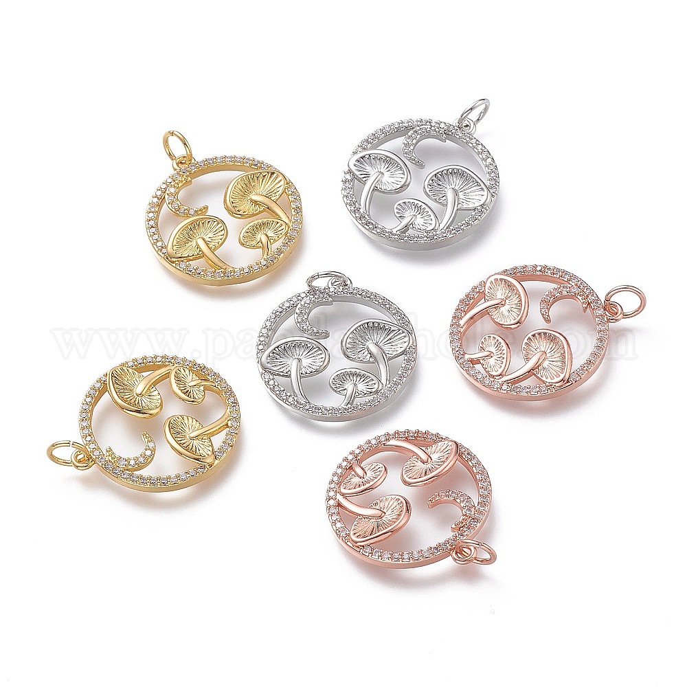 Осенняя тема латунные подвески из прозрачного кубического циркония с микропаве, с прыжковых колец, долговечный, плоский круглый с грибами (025Z82)