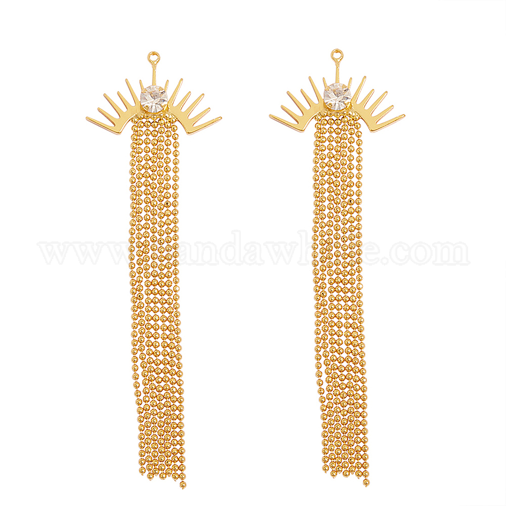 • Золотой Латунные микро проложить кубического циркония подвески, с кисточкой на цепочке, долговечный, глаз, реальный 18 k позолоченный, золотые, 78x24.5x5.5 мм, отверстие : 1.4 мм