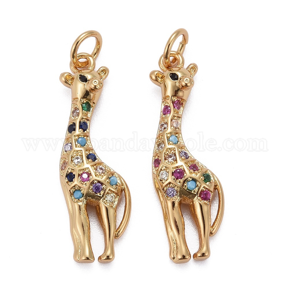 Латунные микро-паве красочные кубические циркониевые подвески, долговечный, с прыжковых колец, жирафа