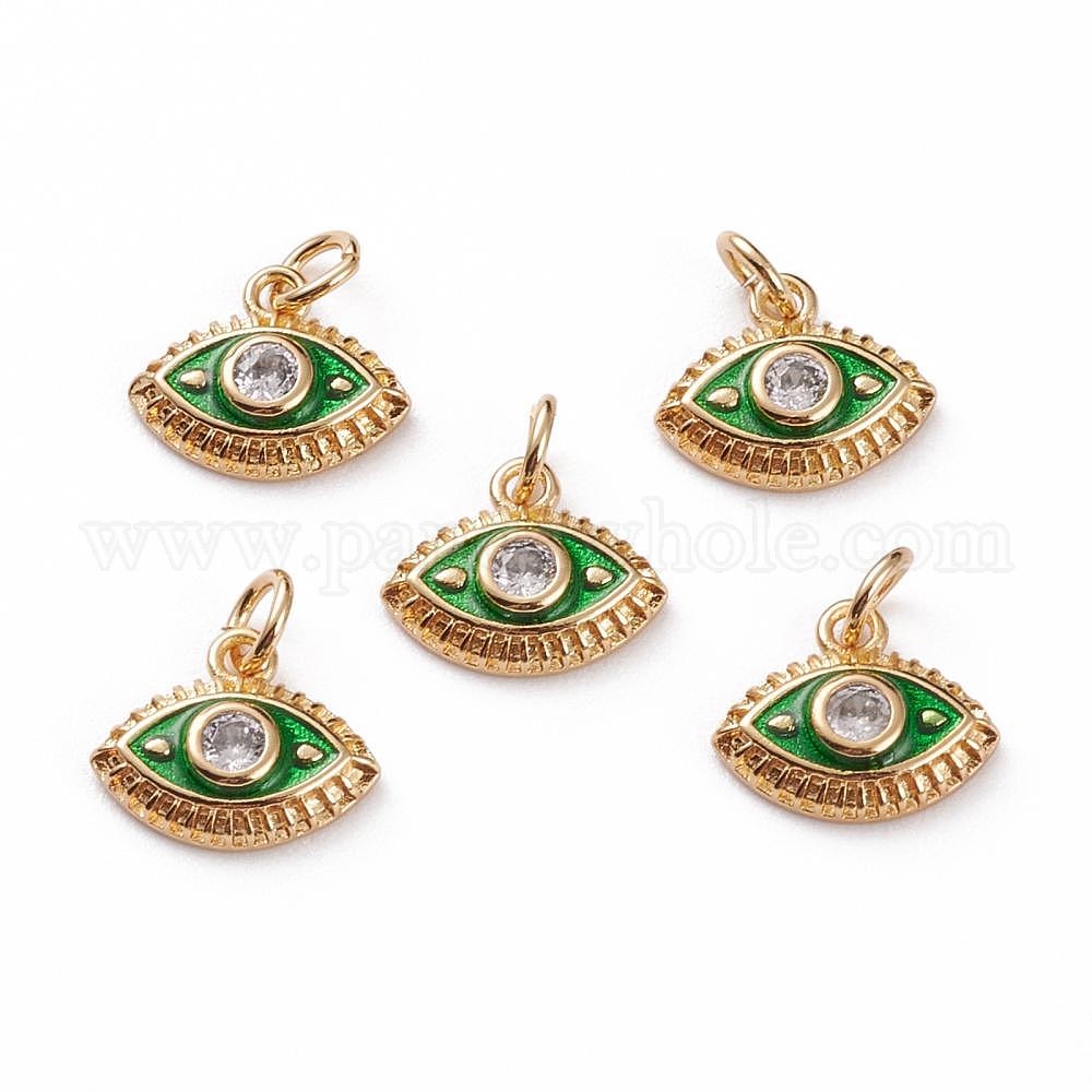 Латунные микропаве прозрачные кубические циркониевые подвески, с эмалью, глаз, с прыжковых колец, реальный 18 k позолоченный