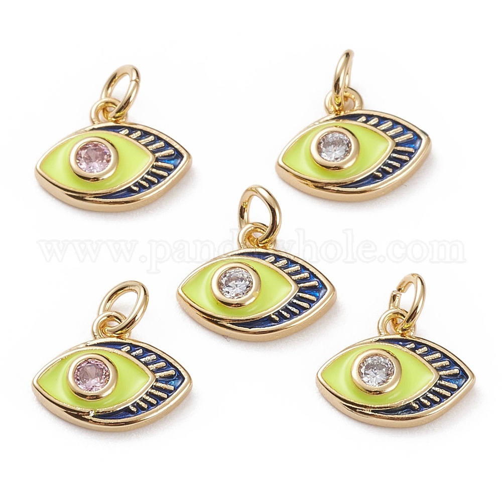 Латунные микропаве прозрачные кубические циркониевые подвески, с эмалью, с прыжковых колец, глаз, реальный 18 k позолоченный
