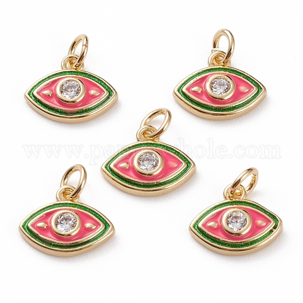 Латунные микропаве прозрачные кубические циркониевые подвески, с эмалью и прыжковыми кольцами, глаз, реальный 18 k позолоченный