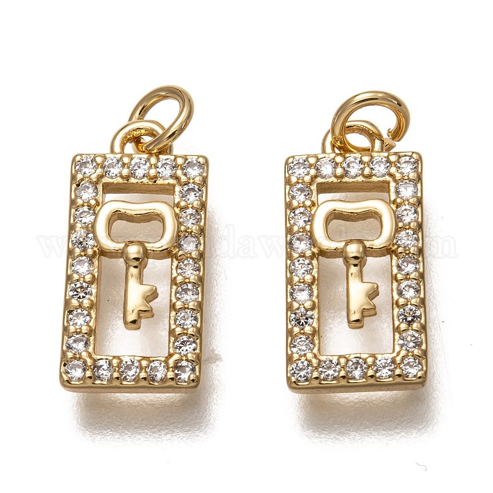Латунные микропаве прозрачные кубические циркониевые подвески, долговечный, с прыжковых колец, прямоугольник с ключом