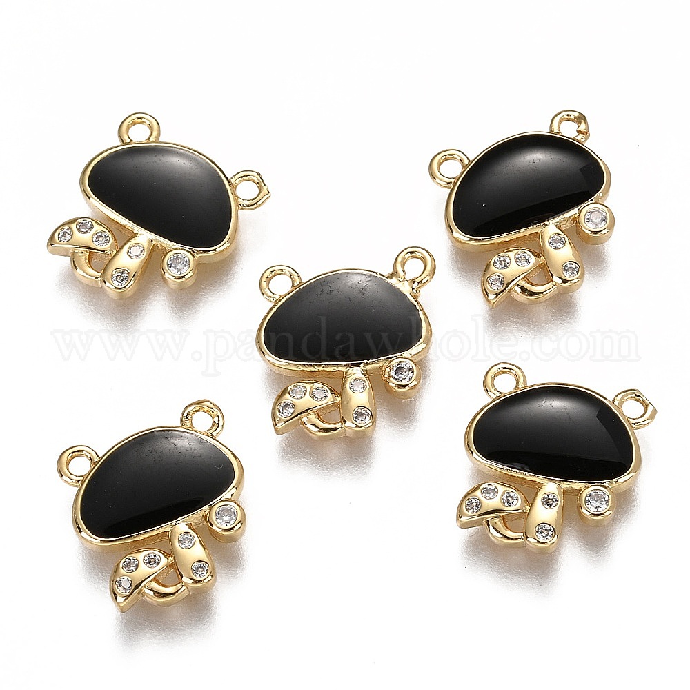 Осенняя тема латунь микропаве прозрачные фианиты подвески, долговечные плакированные ссылки, с эмалью, гриб, реальный 18 k позолоченный
