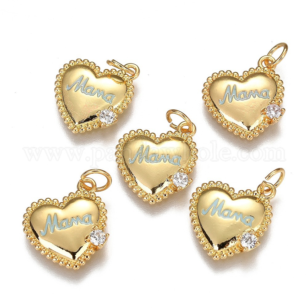 Латунные микропаве прозрачные кубические циркониевые подвески, долговечный, с прыжковыми кольцами и эмалью, день матери, сердце со словом мама, реальный 18 k позолоченный