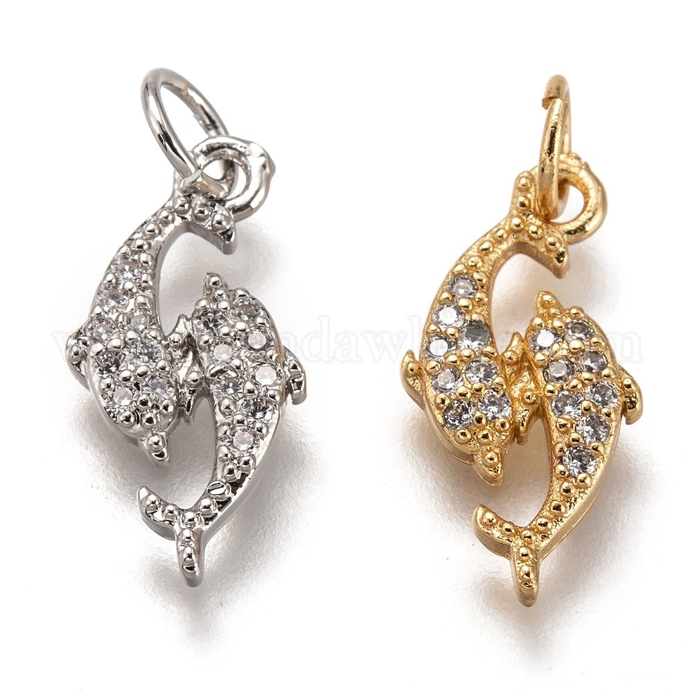 Латунные микропаве прозрачные подвески с фианитом, без кадмия и без свинца, долговечный, двойные рыбы (026Z2X)