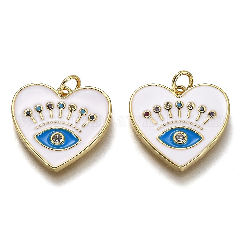 Латунные микро-паве красочные кубические циркониевые подвески, долговечный, с прыжковыми кольцами и белой и синей эмалью, Сердце с глаз