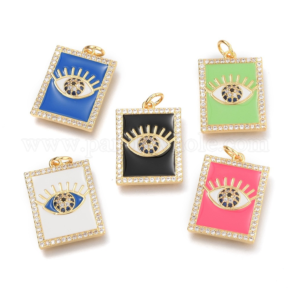 Латунные микропаве прозрачные подвески с фианитом, долговечный, с прыжковыми кольцами и эмалью, реальный 18 k позолоченный, Прямоугольник с глаз