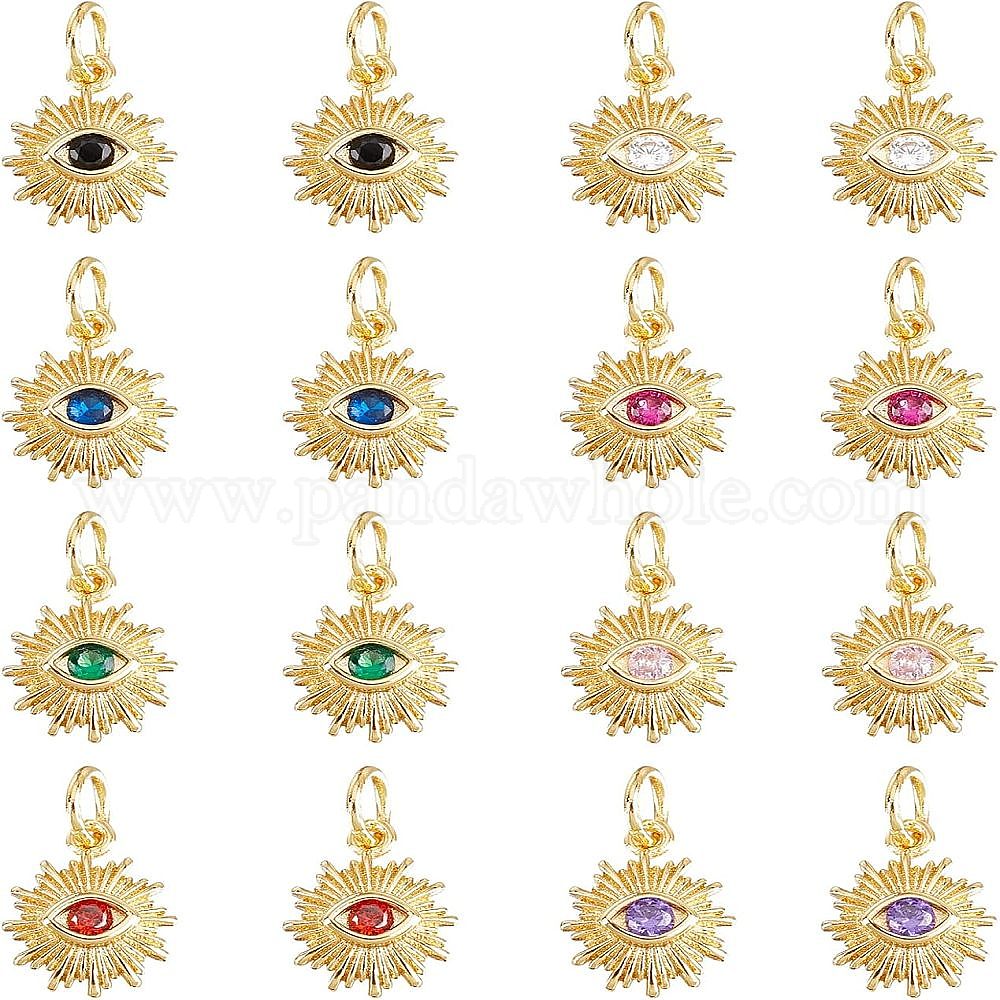 16 шт. 8 цвета латунные подвески из фианита с микропаве, с прыжковых колец, солнце с глазом, реальный 18 k позолоченный