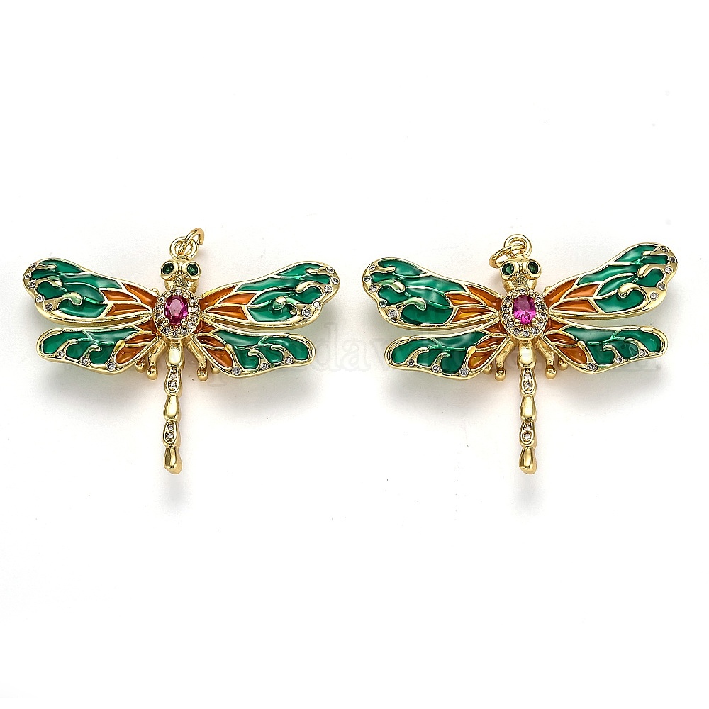 Осенняя тема латунные подвески с микропаве и фианитами, с эмалью и кольцами для прыжков, долговечный, стрекоза