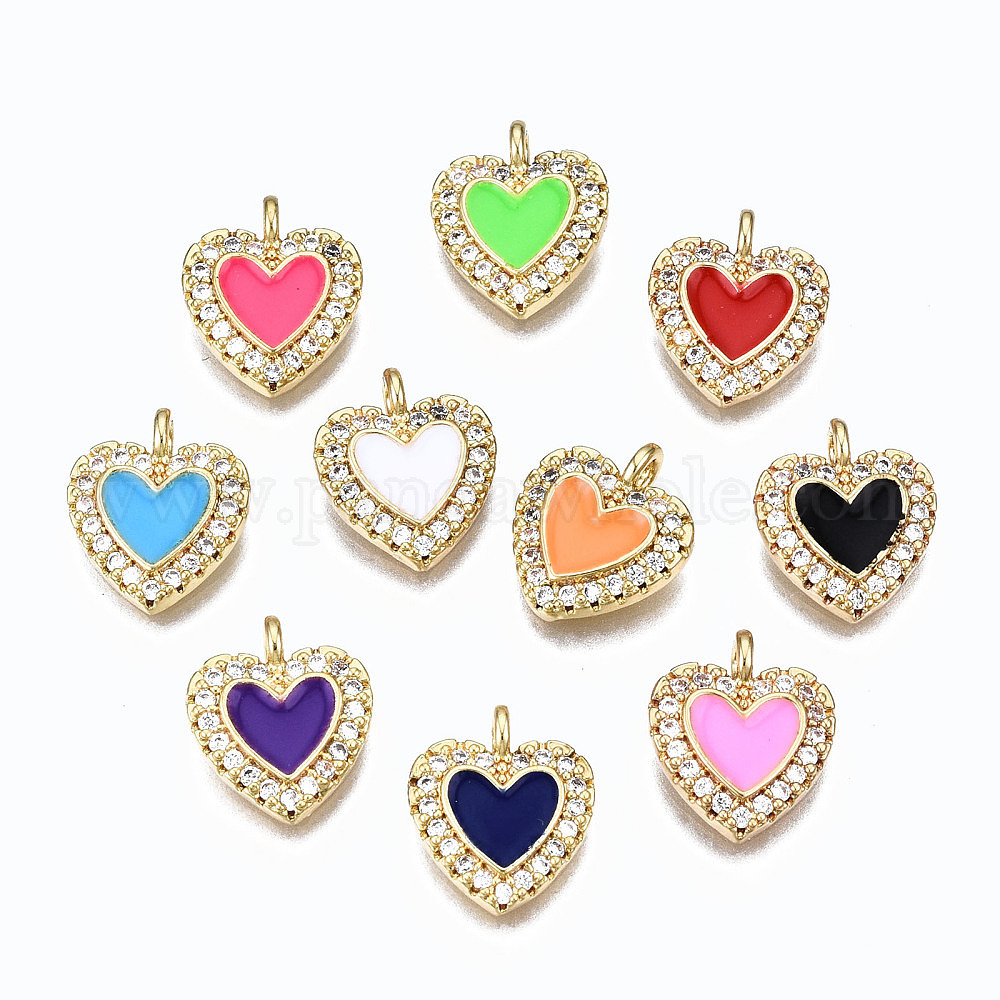 Латунные микропаве прозрачные кубические циркониевые подвески, с эмалью, без кадмия, без никеля и без свинца, сердце, реальный 16 k позолоченный