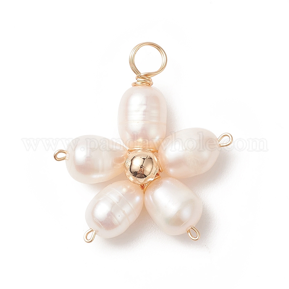 • Золотой Подвески из натурального пресноводного жемчуга, с обмоткой из медной проволоки, , золотые, 22.5x20x6 мм, отверстие : 3.2 мм