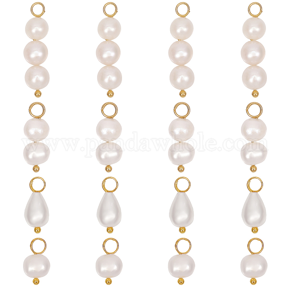 16шт 4 стили подвески из натурального пресноводного жемчуга, каплевидные и круглые подвески, с металлическими петлями