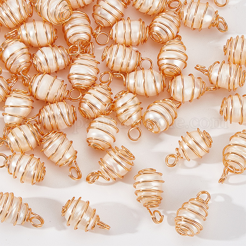 50 подвески из медной проволоки из натурального культивированного пресноводного жемчуга, рисовые прелести