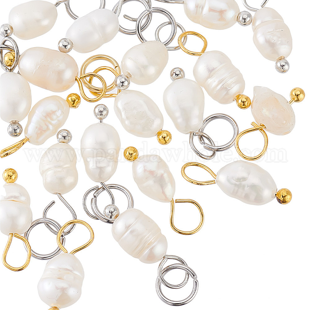 20шт 2 цвета класса натуральный культивированный пресноводный жемчуг рисовые подвески, с латунным штифтом и 304 открытыми перемычками из нержавеющей стали.