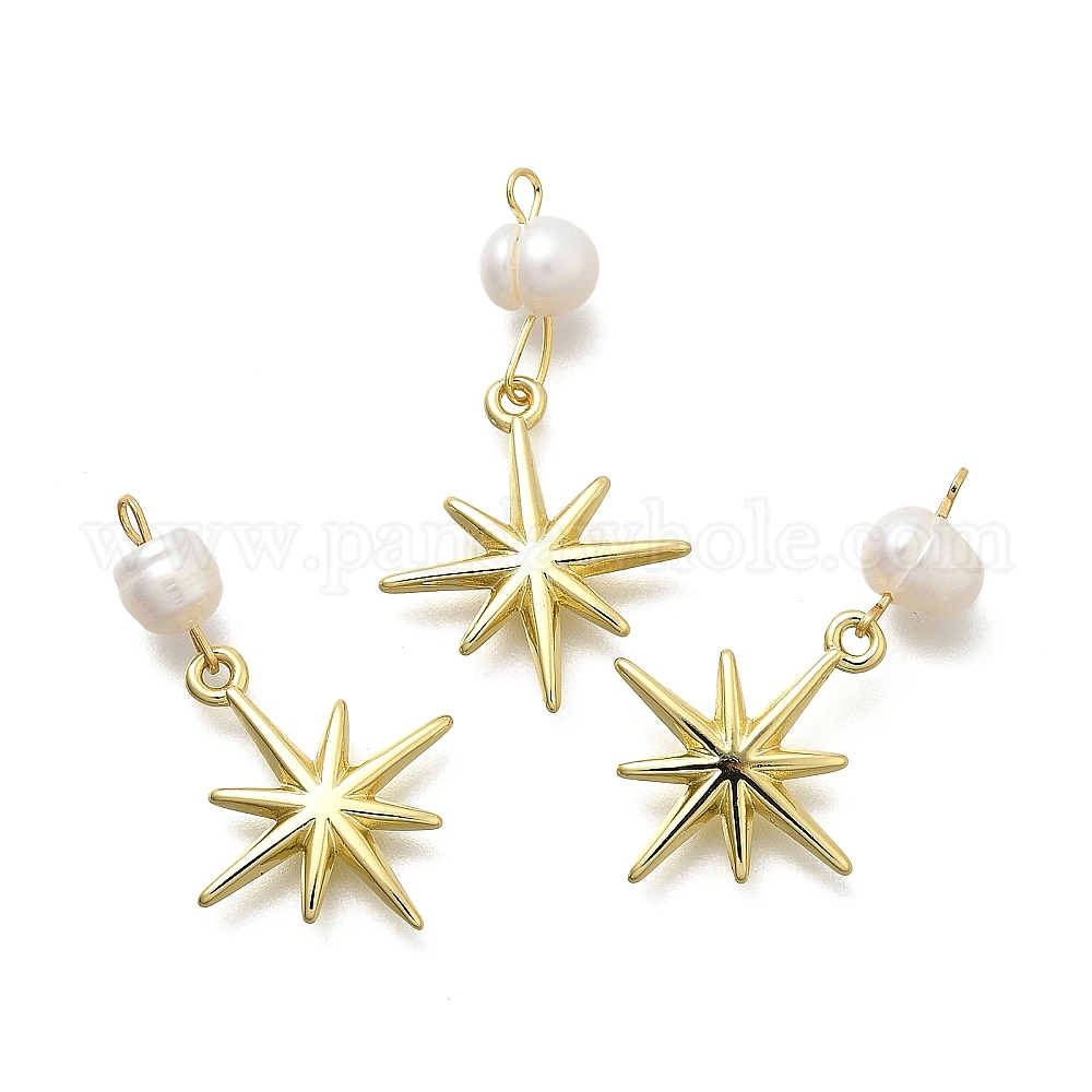 Подвески в форме звезды из латуни и натурального жемчуга, стойки покрытие, долговечный, без кадмия и без свинца