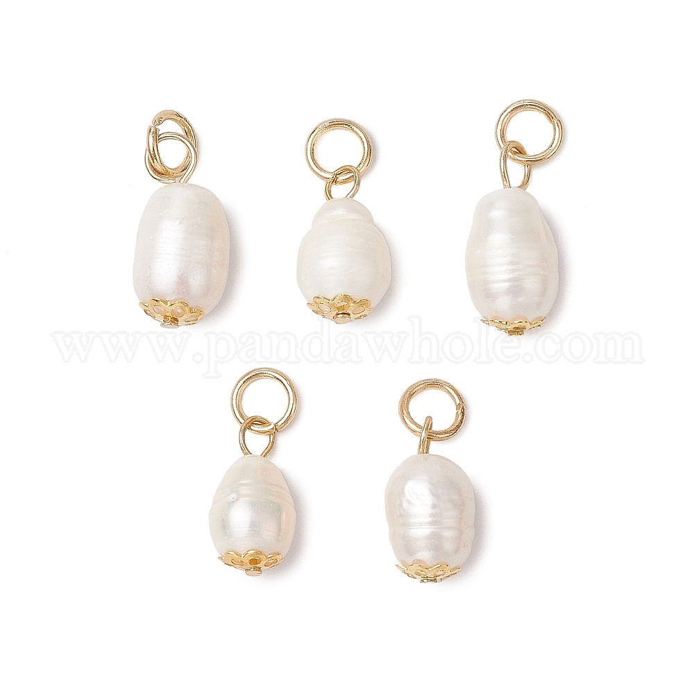 Природные пресноводные жемчужные подвески, рисовые прелести, с прыжковых колец (031TD3)