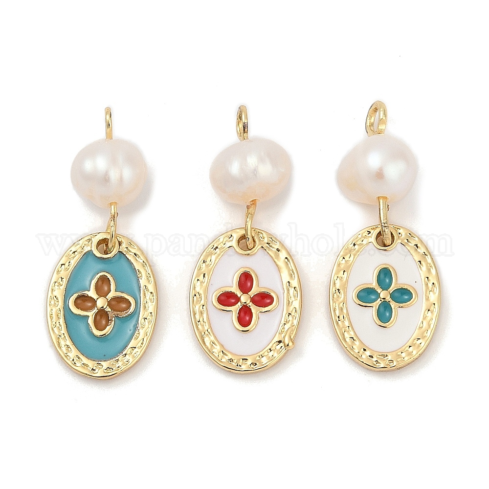 Подвески из натурального пресноводного жемчуга и латуни, с эмалью, овальные амулеты, стойки покрытие, без кадмия и без свинца, долговечный