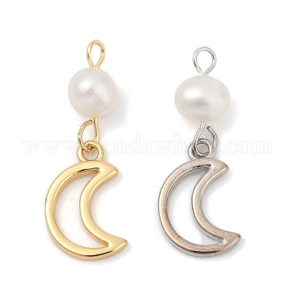 Подвески из натурального пресноводного жемчуга и латуни, Луна прелести, стойки покрытие, без кадмия и без свинца, долговечный (0328FJ)