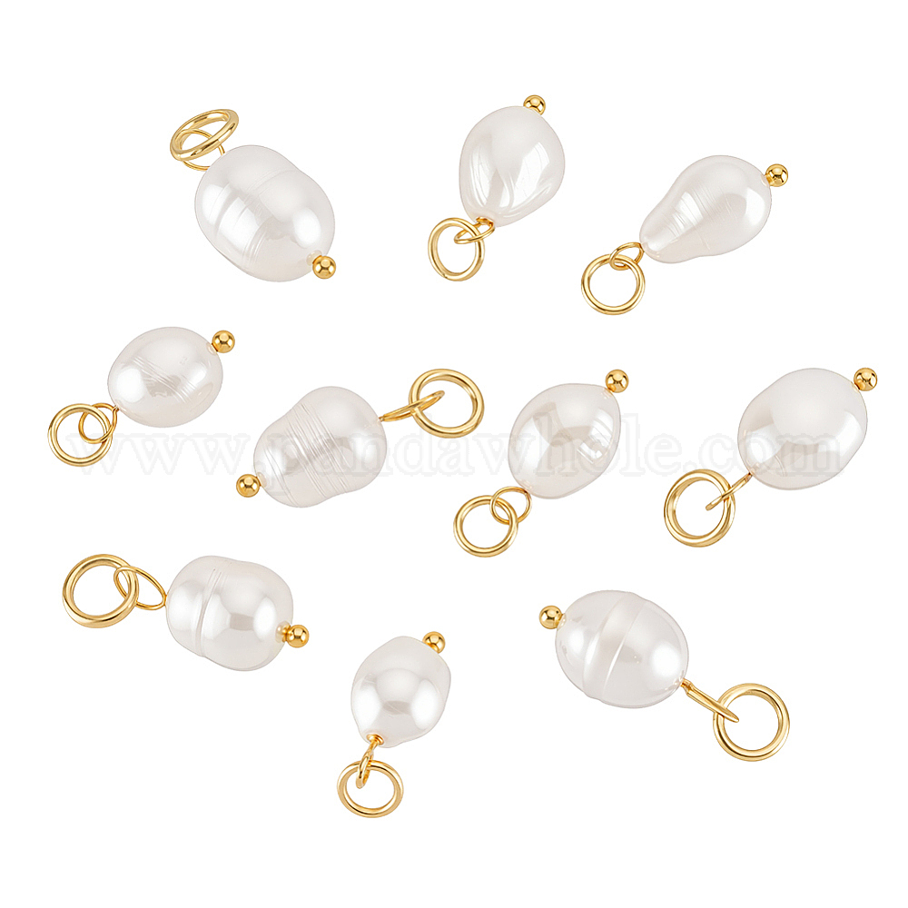 10шт 2 стили подвески из натурального культивированного пресноводного жемчуга, рисовые прелести, с 304 кольцами из нержавеющей стали, золотые