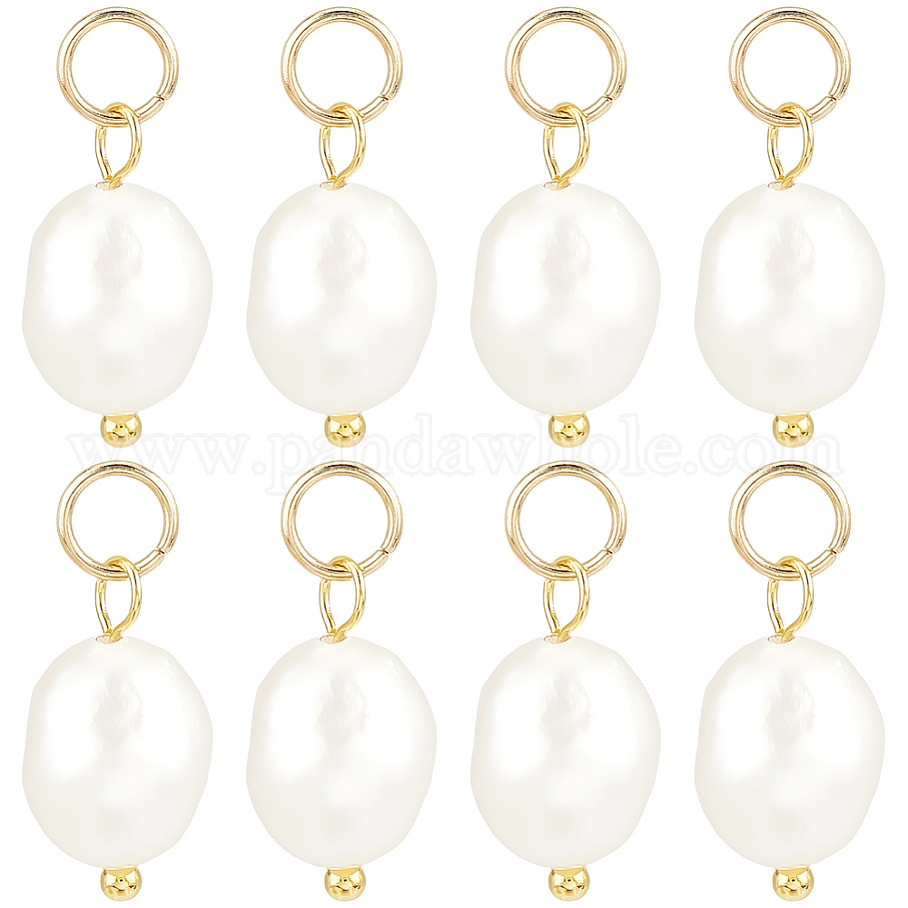 10шт. натуральный культивированный пресноводный жемчуг, двухсторонние полированные подвески, с выводами из латуни и 304 перемычками из нержавеющей стали., цветочный белый