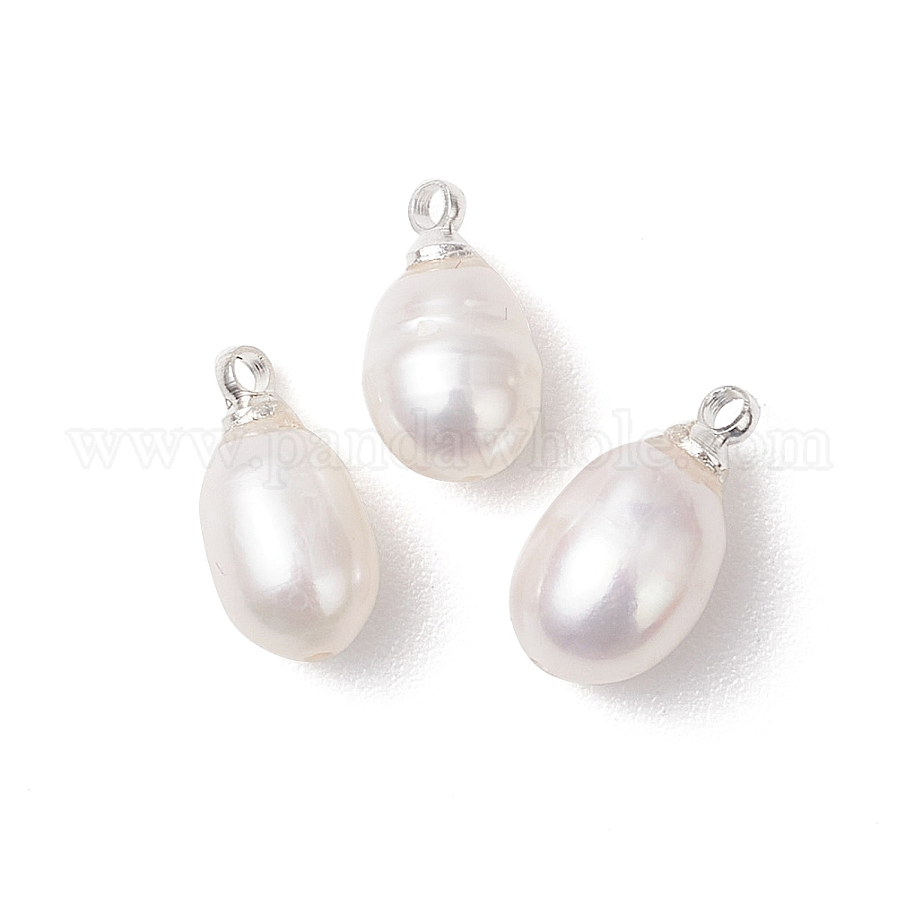 Натуральные культивированные пресноводные жемчужные рисовые подвески, с латунной поручительств, белые