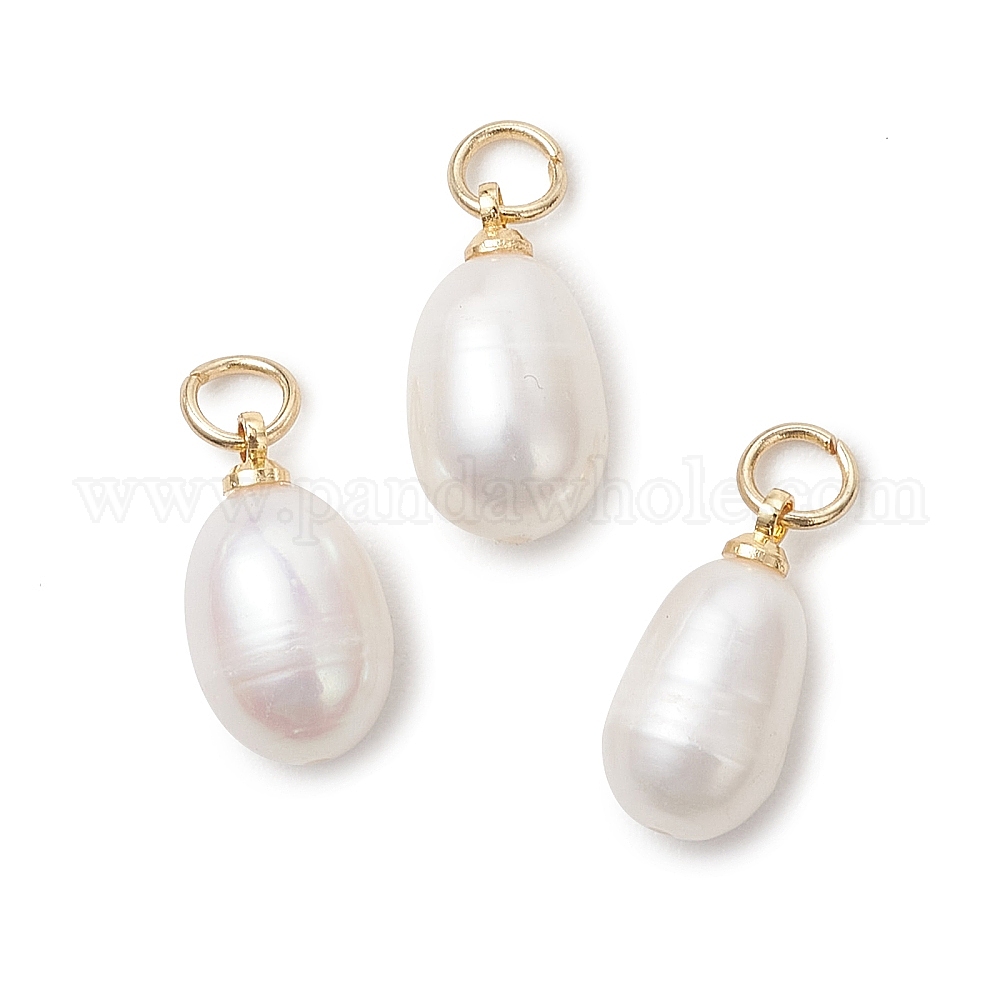 Натуральные культивированные пресноводные жемчужные рисовые подвески, с латунными штифтовыми скобами, белые