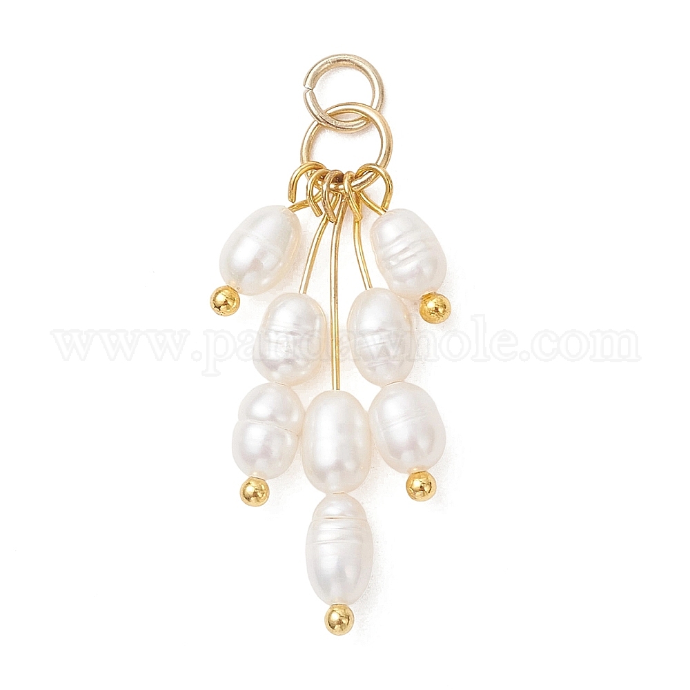 • Золотой Натуральные подвески из культивированного пресноводного жемчуга, Подвески-кисточки из рисовых бусин с латунной и нержавеющей стальной фурнитурой., белые, золотые, 304 мм, Перейти кольцо: 11~28x4 мм, внутренний диаметр: 5x0.8 мм