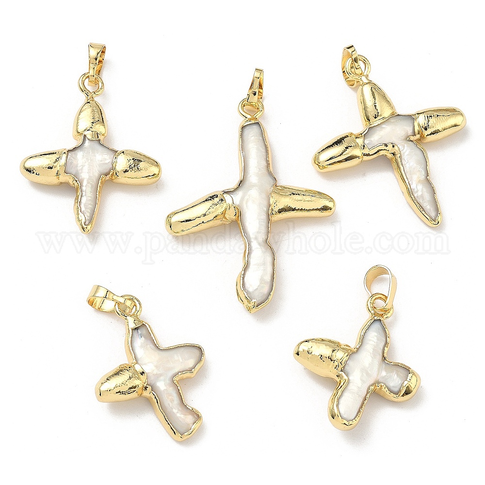 • Настоящее золото 18K Подвески из натурального барочного жемчуга кеши с гальваническим покрытием, Подвески в виде самолётиков с латунными защёлками., цветочный белый, без кадмия и без свинца, долговечный, стойки покрытие, реальный 18 k позолоченный, 29~46x22~33x6~7.5 мм, отверстие : 7x5 мм