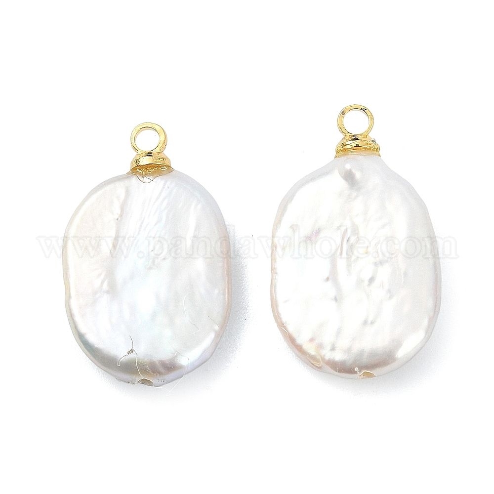• Золотой Подвески из натурального барочного жемчуга кеши, овальные подвески с латунными дужками, белые, золотые, 18.5~19.5x11.5x3.5~4 мм, отверстие : 1.6 мм