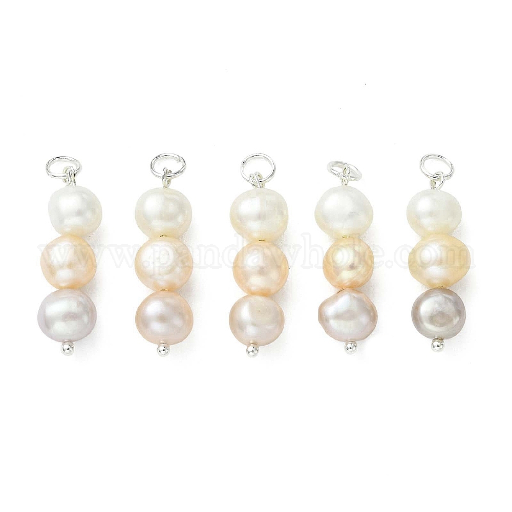 Подвески из натурального пресноводного жемчуга, Двусторонние полированные подвески из бисера с петлями из нержавеющей стали, серебряный цвет гальваническим