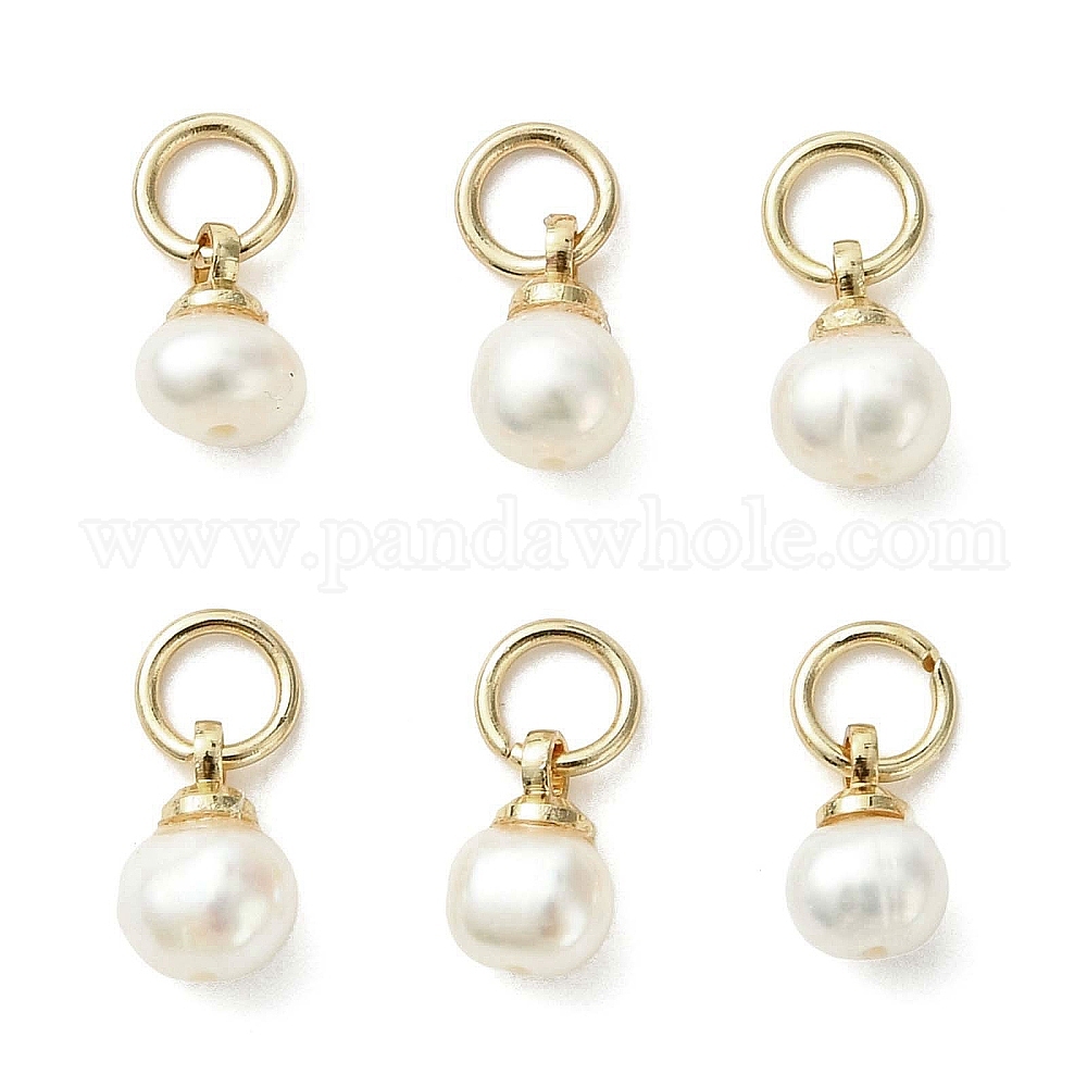 • Золотой Подвески из натурального пресноводного жемчуга, картофельные подвески с 304 петлями из нержавеющей стали, кремово-белые, золотые, 7~8x4~5 мм, Перейти кольцо: 5x0.8 мм, внутренний диаметр: 3 мм