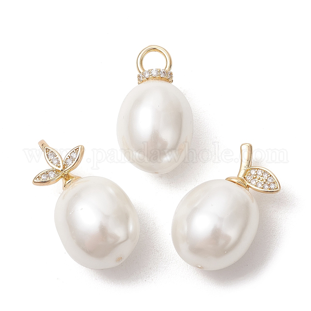 Подвески из латуни с микропаве из кубического циркония и жемчугом из раковин., овальные амулеты