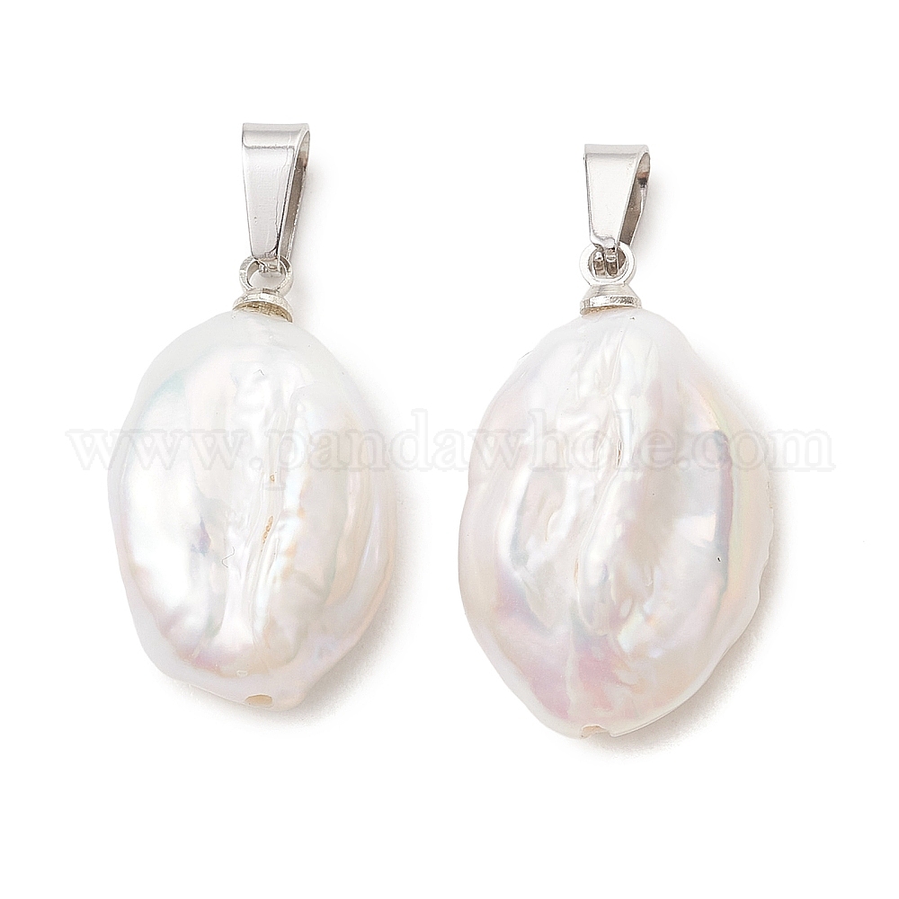 Подвески из натурального барочного жемчуга кеши, овальные подвески 201 с защелками из нержавеющей стали, белые