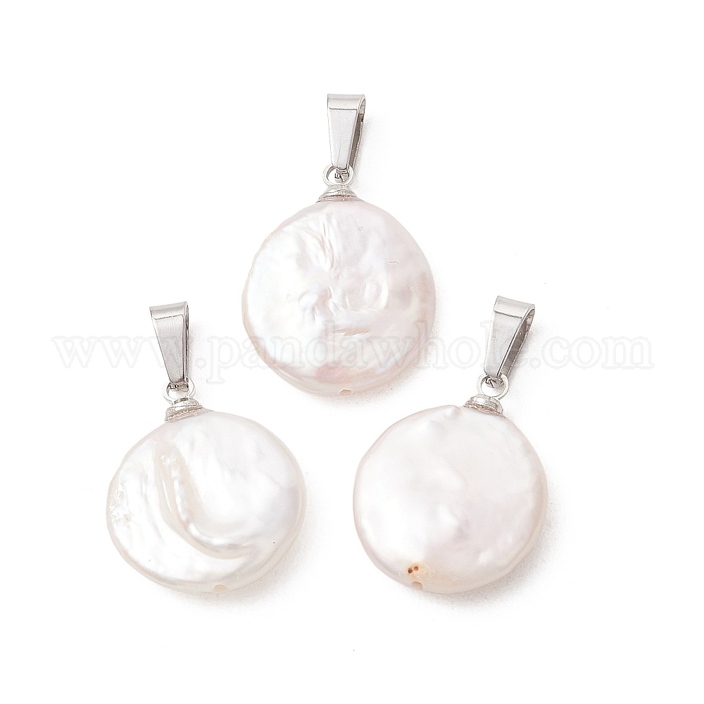 Натуральные кеши жемчужные подвески, Круглые подвески в виде монет с 201 защелкивающимися креплениями из нержавеющей стали, белые