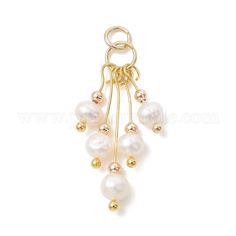 • Золотой Подвески из натурального пресноводного жемчуга, Подвески-кисточки из картофельных бусин с 304 соединительными кольцами из нержавеющей стали, кремово-белые, золотые, 31 мм, отверстие : 3 мм