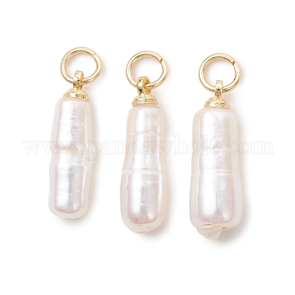 Подвески из натурального барочного жемчуга кеши, палочные амулеты, с 304 кольцами из нержавеющей стали, белые