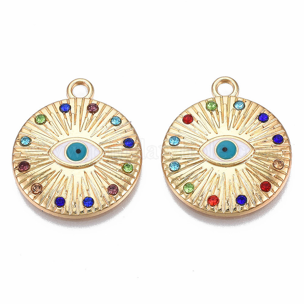 Стойки обшивки сплава эмали подвески, с красочными горный хрусталь, без кадмия, без никеля и без свинца, плоский круглый с оберегами от сглаза