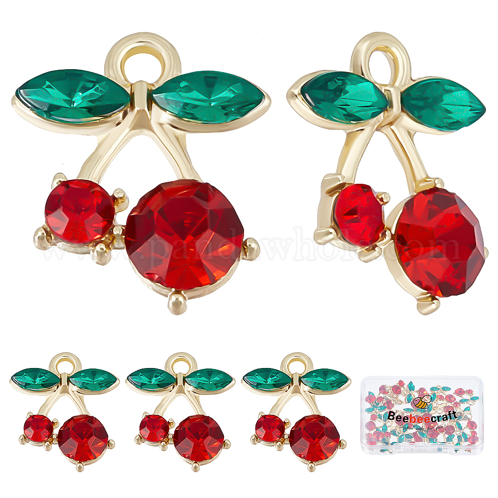 30шт. подвески из сплава со стразами, черри прелести, золотые