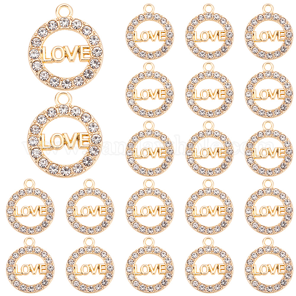 • Золотой 30шт. подвески из цинкового сплава со стразами, кольцо с подвесками со словом «любовь», золотые, 21x18x2 мм, отверстие : 2 мм