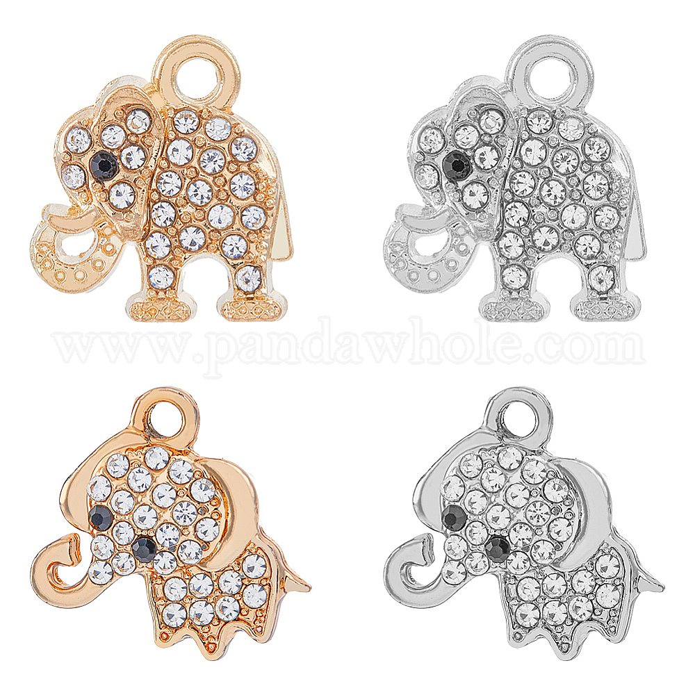 • Platinum & Light Gold 32шт 4 подвески со стразами в стиле сплава, Слон прелести, платина и светлое золото, 17x15~17x3 мм, отверстие : 2 мм, 8 шт / стиль