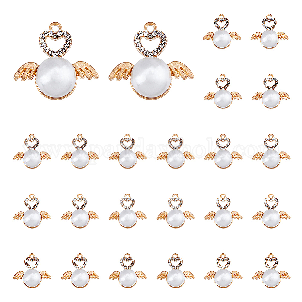 40подвески со стразами из сплава, с абс пластмассовой имитационной жемчужиной, сердечки-подвески и крылья